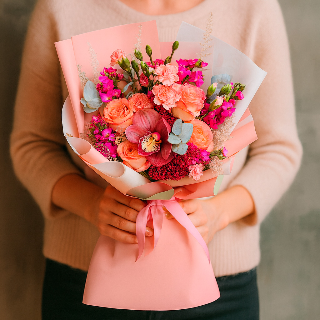 Мы используем только свежие цветы, которые поступают в магазин напрямую с плантаций и оранжерей. Каждый букет собирается вручную опытными флористами.