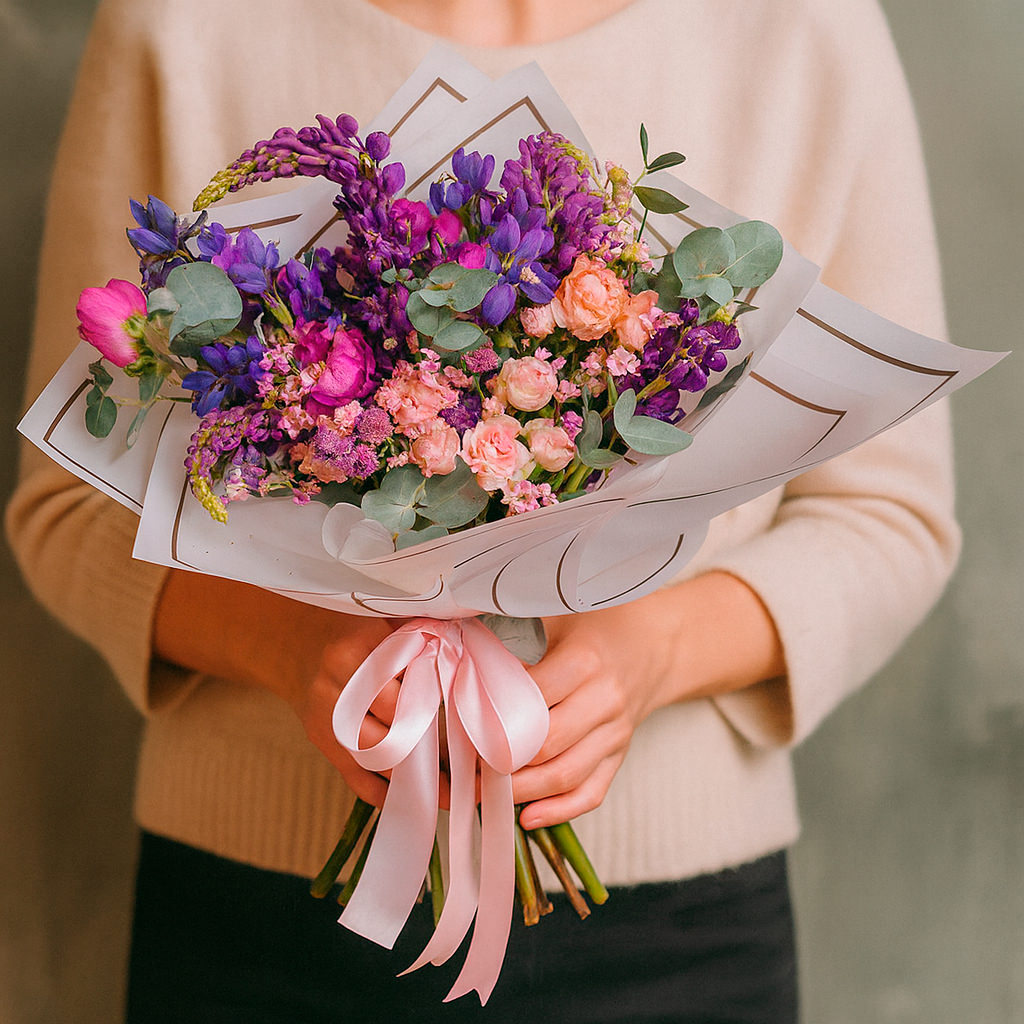 Букет цветов «Люпиновый бриз» — симфония цветовых решений, где каждый элемент создает гармонию с другими. Разнообразие и гармония поражают, создавая атмосферу, которая надолго остается в памяти.