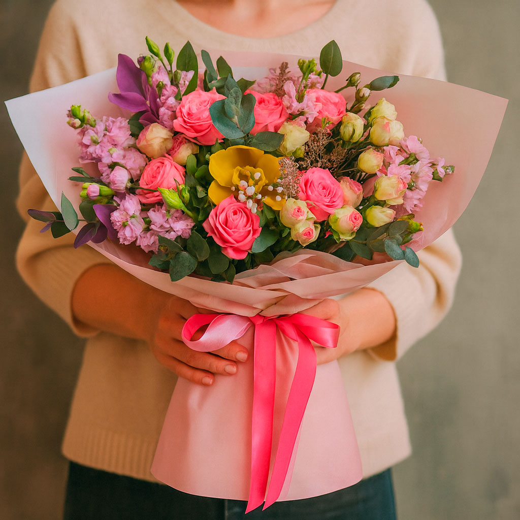 Этот букет — это ваше послание, наполненное чувствами, а его яркие оттенки подарят радость и свет в каждый дом.