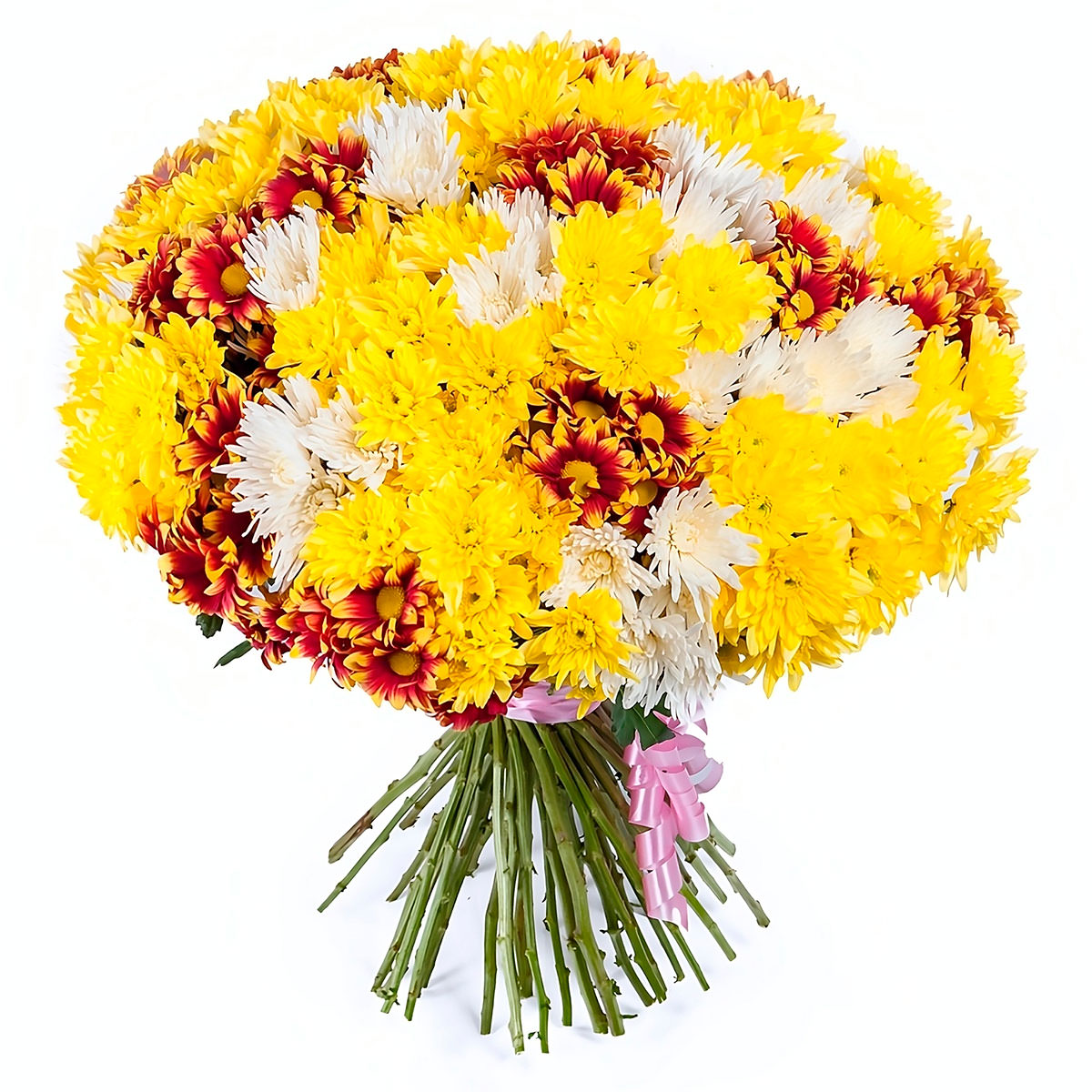 Хризантемы кустовые желтые, красно-желтые, белые.