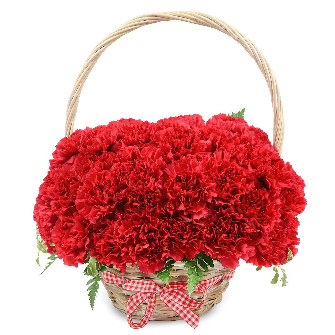 Яркие красные гвоздики создают впечатляющую композицию в плетёной корзине, придавая ей элегантность и выразительность. Корзина украшена клетчатой лентой, добавляющей шарм и завершённость. Альтернативное оформление возможно в корзине из лозы или с тканевой отделкой. Прекрасный подарок на юбилей для любимой.