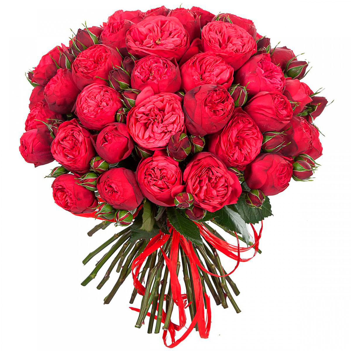 Розы Пионовидные кустовые красные — это реальный карнавальный праздник для зрения, изобилующий яркими цветами, которые наполняют пространство радостью и теплом. Визуальный ансамбль, созданный яркими оттенками и разнообразными текстурами, вызывает восхищение и притягивает взгляды.