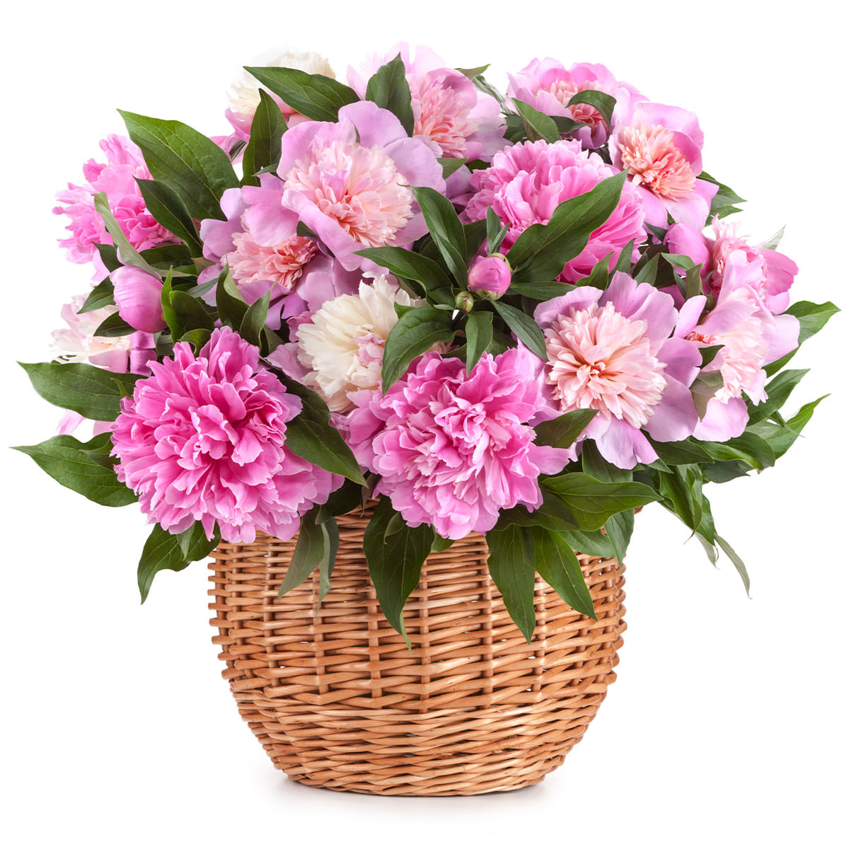 Розовые пионы в плетёной корзине создают атмосферу нежности и утончённости. Корзина из натурального материала подчёркивает природную красоту цветов. Возможны альтернативы оформления: корзина из лозы или с тканевой отделкой. Подойдёт для поздравления на день рождения или для любимой.