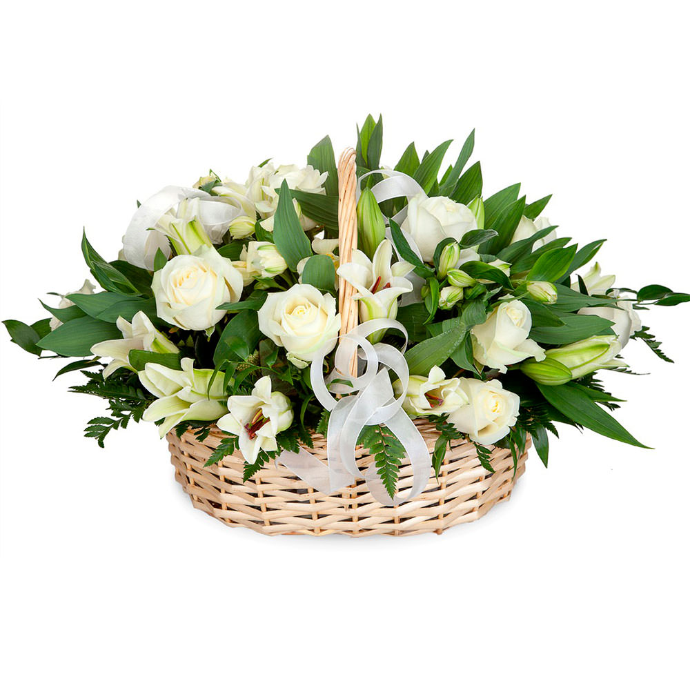 Элегантная композиция из белых одноголовых роз и лилий, дополненная нежным папоротником, создаёт атмосферу чистоты и утончённости. Цветы размещены в плетёной корзине с оазисом, что обеспечивает их свежесть и долговечность. Альтернативно можно оформить в корзине из ротанга или с тканевой отделкой. Прекрасный подарок для мамы на годовщину или для невесты на свадьбу.